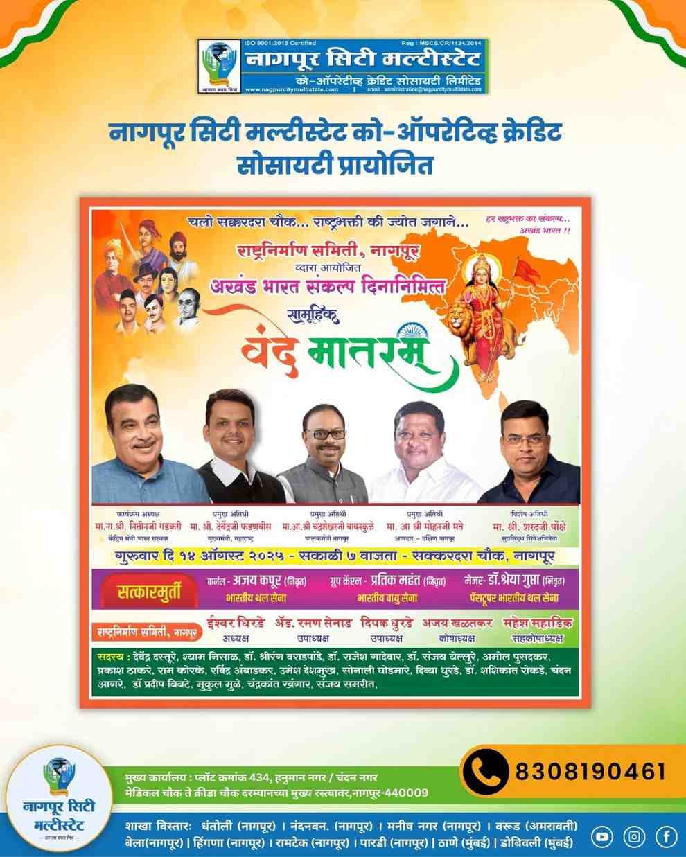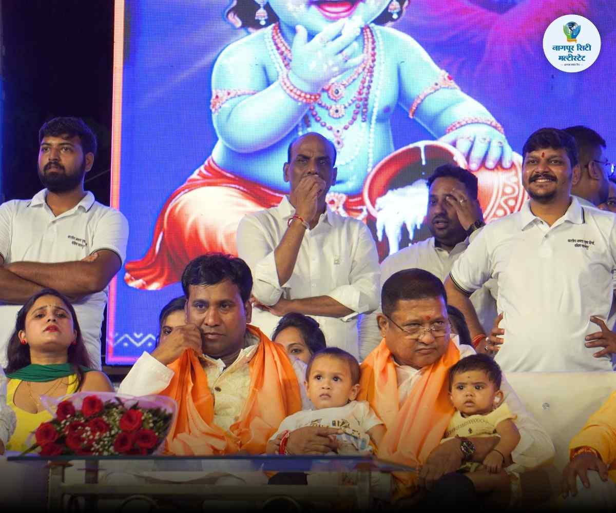 Grand Dahi Handi Festival 2025 Celebrated with Great Enthusiasm by Nagpur City Multistate Co-operative Credit Society Limited ! The Dahi Handi Festival held on 17th August 2025 at Chhota Tajbagh, Nagpur, became a grand celebration with the presence of popular actor Swapnil Joshi, versatile actress Amruta Khanvilkar, and Hon’ble MLA of Maharashtra, Shri Mohan Mate.”